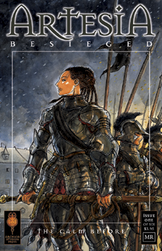As I noted a few weeks back, I picked up Artesia: Besieged #1 on a lark, having enjoyed several of the other titles Archaia Studio Press has recently released — The Lone and Level Sands, Robotika and Mouse Guard — and was totally captivated by it, so much so that I bought the first two TPBs, Artesia and Artesia Afield, over the following two weeks and quickly devoured both of them. Mark Smylie has constructed an impressive medieval world that deftly mixes high fantasy with sword and sorcery, and created one of the most compelling lead characters I’ve ever encountered in Artesia, a former concubine who becomes a respected war captain, feared priestess and, eventually, self-proclaimed Queen.